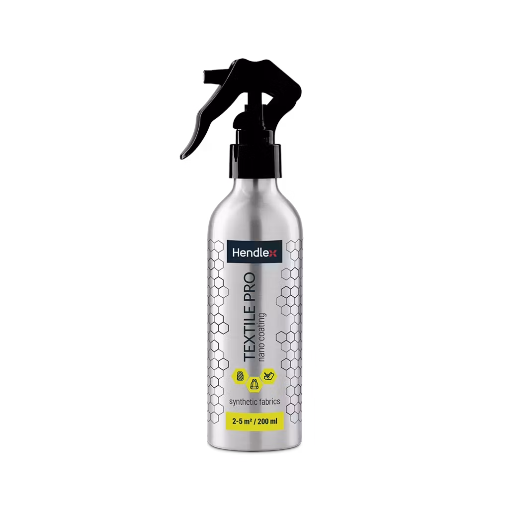 Nanoteknologisk lösning för textil från Hendlex som gör tyger resistenta mot vatten- och oljebaserade vätskor. Denna produkt är lämplig för användning på syntetiska tyger i ett fordon, inklusive sittplatser, barnstolar och mattor. Produkten skapar ett osynligt lager som skyddar ytan från vatten och smuts samtidigt som den tillåter den behandlade ytan att andas.