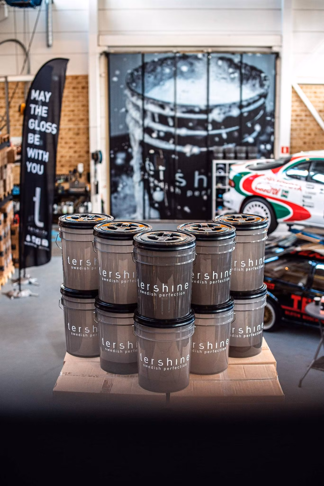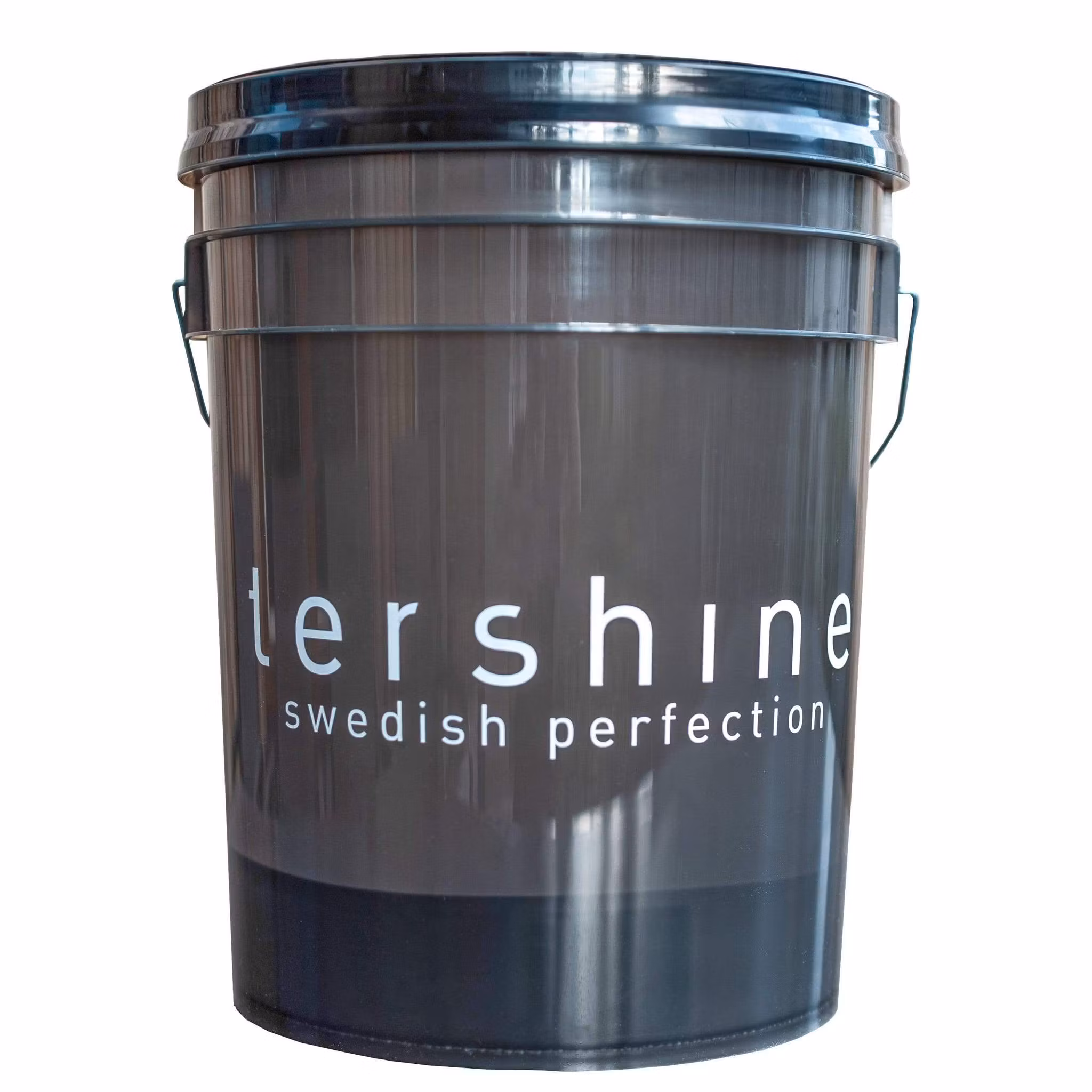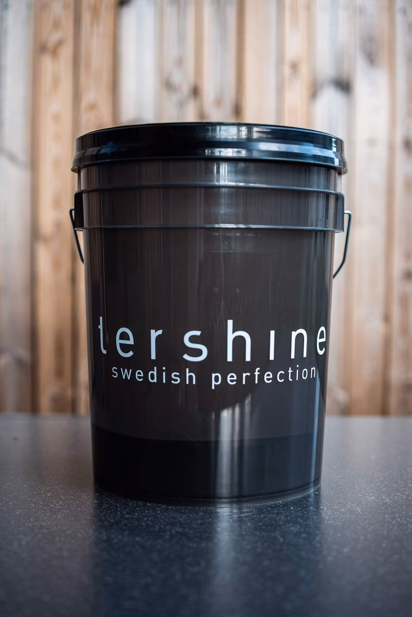 Grymt smutt och robust hink som rymmer drygt 18 liter. Riktigt läckert röktonad så man enkelt ser hur mycket vatten som finns kvar. Grit-guard och vattentätt lock samt tryckt logga och litermått på sidan. Ett måste i tvätthallen eller på uppfarten.